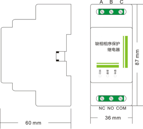 當(dāng)發(fā)生缺相、錯(cuò)相等故障時(shí),繼電器釋放,對(duì)應(yīng)的故障燈亮起。