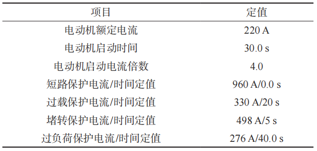 電動機保護器主要定值見表1。